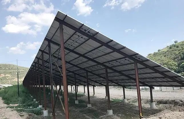 ????????耐候鋼光伏支架利用耐候鋼耐腐蝕性,在降低光伏支架成本的同時還能減少鍍鋅污染,縮短生產周期,使工程工期得到了有力的保障,解決了傳統支架的短板。