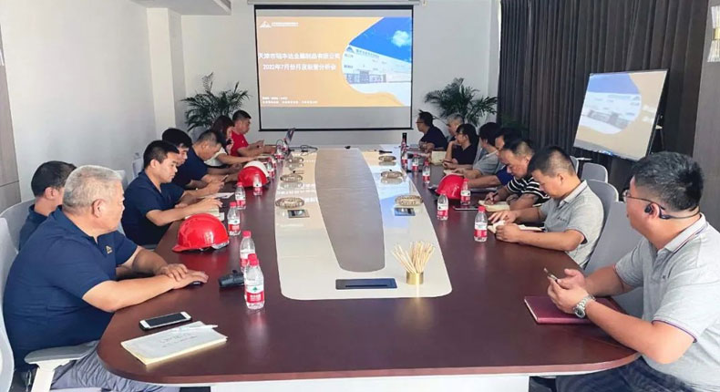 8月中旬,天津市瑞豐達金屬制品有限公司7月份經營分析會圓滿結束,本次會議意在對公司7月份經營情況以及管理工作進行全面剖析,并對公司下一階段經營管理工作進行安排部署。公司董事長王總、總經理張總以及公司各部門負責人參加會議。